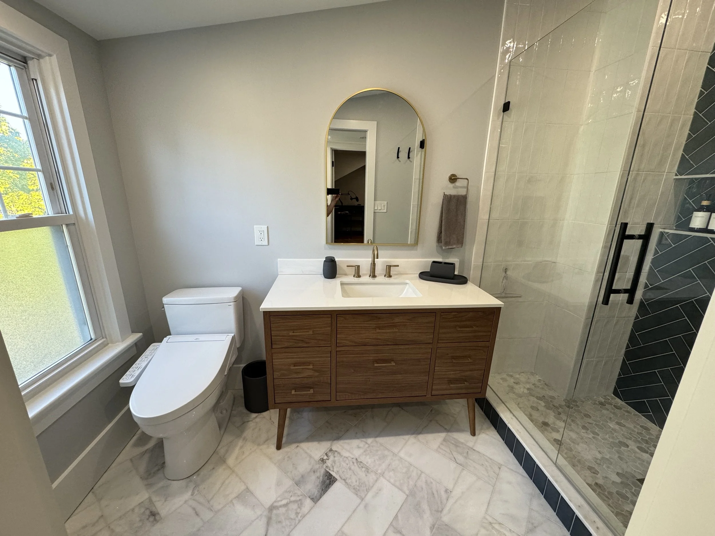 9-ft double herringbone accent shower wall